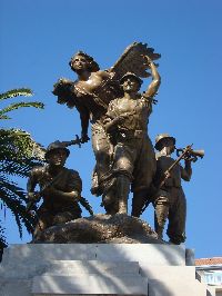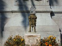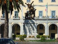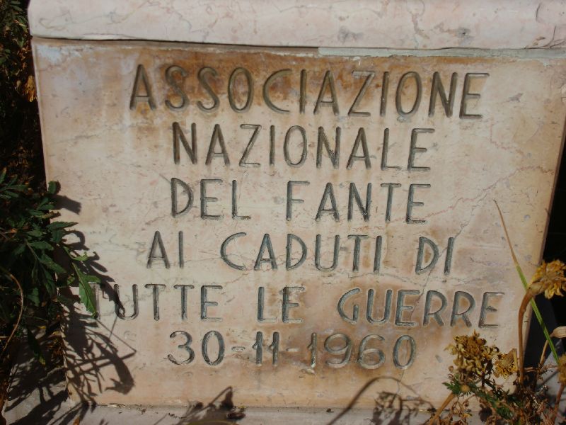 At the center of the pizza facing the municipal building is the area where the monument stands and it is surrounded by a small planted area. The monument itself cast of bonze and is set on a marble pedestal. On two sides are two plaques commemorating those who lost their lives in battle. The monument was actually unveiled on the 18 of November 1936 to commemorate the soldiers that died during the first world warFirst World War. The other plaque on the base was added later to include those who lost their lives during the second world warSecond World War. There is also a little altar with an eternal candle burning. The monument itself was done by the well known local sculptor Francesco Ierace. The sculpture represents three soldiers at the moment of attack, and at the top, the winged statue of Victory, armed and triumphant, crowns the masterpiece.